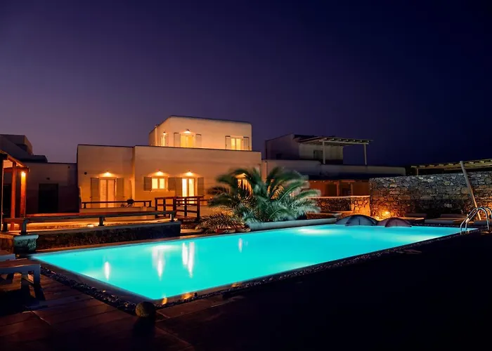 De luchthaven Mikonos is binnen 10 minuten rijden te bereiken en natuurattracties zoals het Agios Stefanos-strand liggen op 2 km afstand. De 6-badkamer villa is op 25 minuten wandelafstand van het Lena's Huis genesteld. Deze gesitueerde in Tourlos Secret Island Villa bevindt zich op 6 km van Klooster van Panagia Tourliani en is een populaire bestemming voor zowel gelovigen als toeristen.